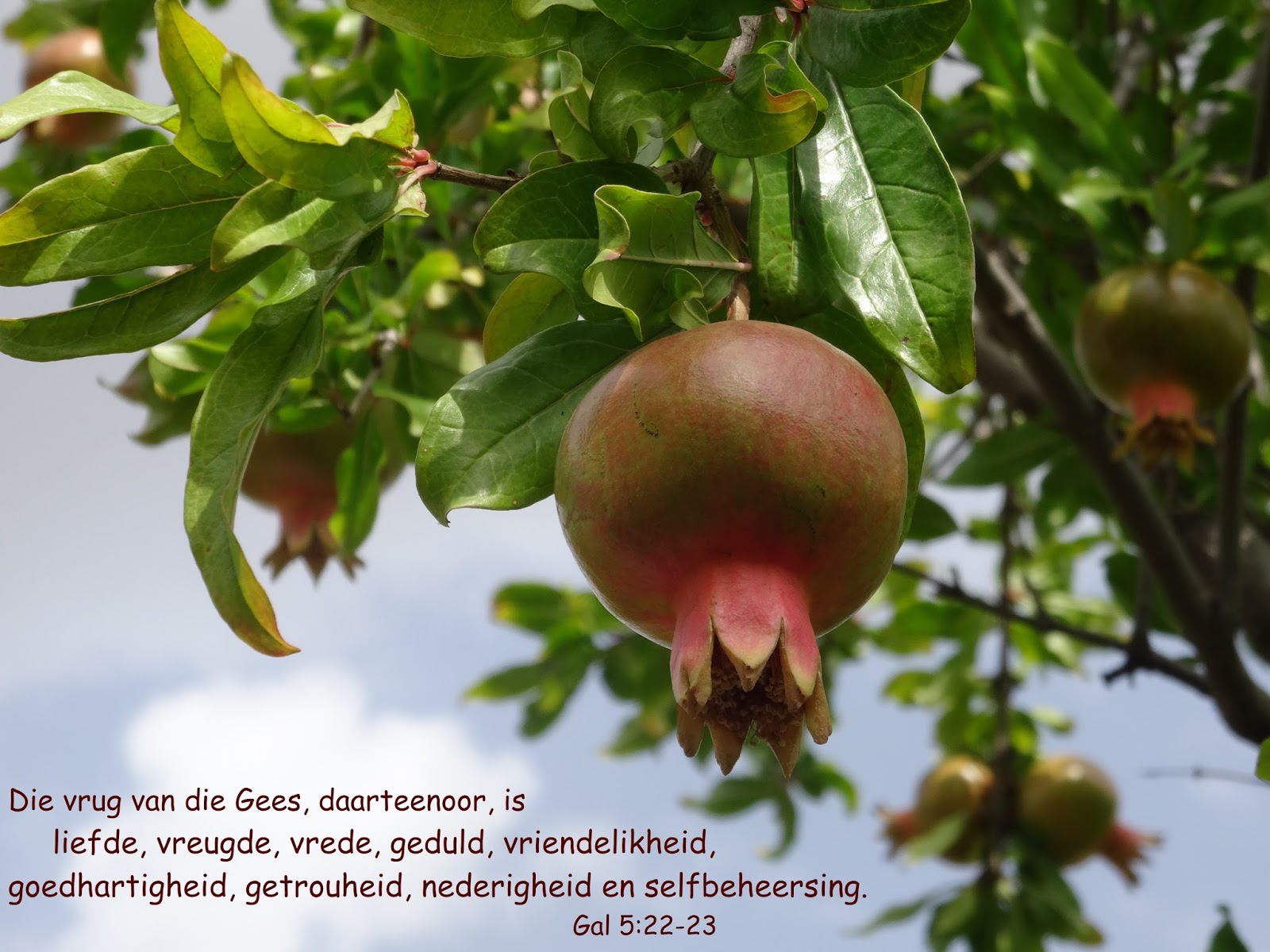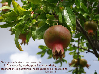 Dan moet jy sorg dat die goeie-boom-wortels genoeg water en kos kry. Hulle moet so welig in jou hart groei dat geen slegte-boom-saadjie kan plek kry om ooit weer wortel te skiet nie. Die goeie boom sal groei totdat jou mond daarvan oorloop en jou lewe die goeie vrugte dra.