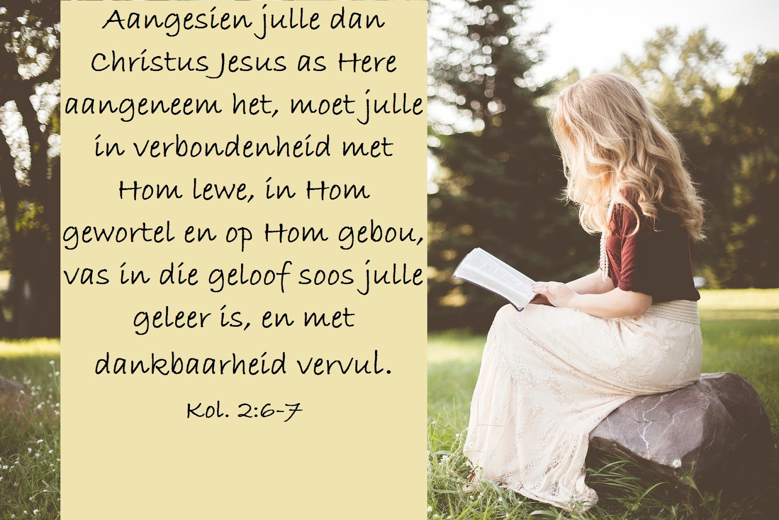 Mag jy elke dag in verbondenheid met Hom lewe, in Hom gewortel en op Hom gebou. Standvastig in jou geloof en vol dankbaarheid.